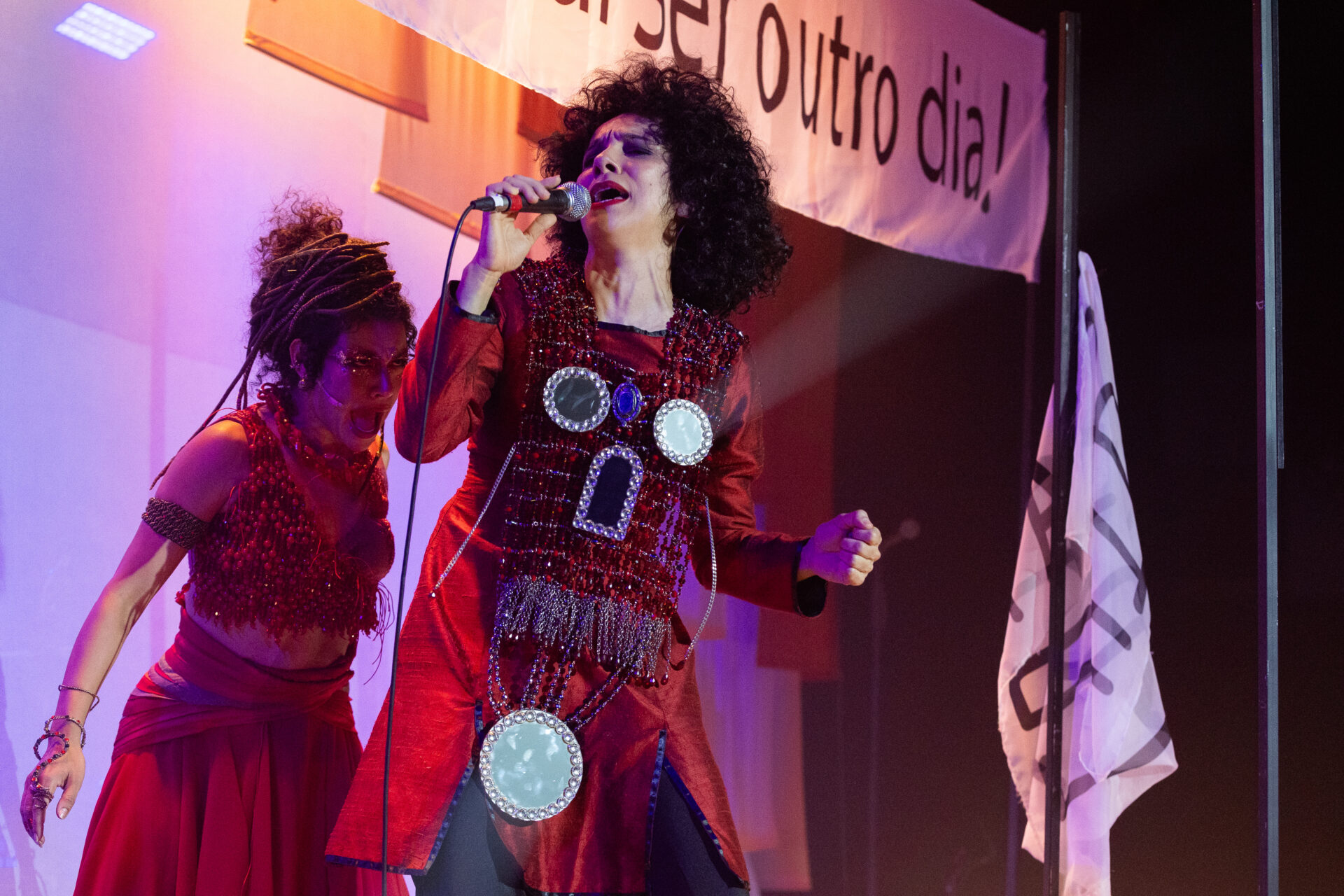 Nesta costura, a direção musical e os arranjos de Daniel Rocha proporcionam novas leituras às canções e, assim como Vapor Barato e Recanto Escuro, todas são complementares ao texto. É o caso de Vaca Profana, de Caetano, e Mãe de Todas as Vozes, de Nando Reis, no começo da peça, com mensagens feministas acentuadas para mostrar o nascimento e a rotina familiar de Gal. Logo adiante, Eu Sou Terrível, de Roberto e Erasmo Carlos (1941-2022), deflagra a personalidade da artista no enfrentamento da ditadura militar, e Baby é entoada em uma cena de múltiplas camadas dividida com Maria Bethânia (papel de Calu Manhães).