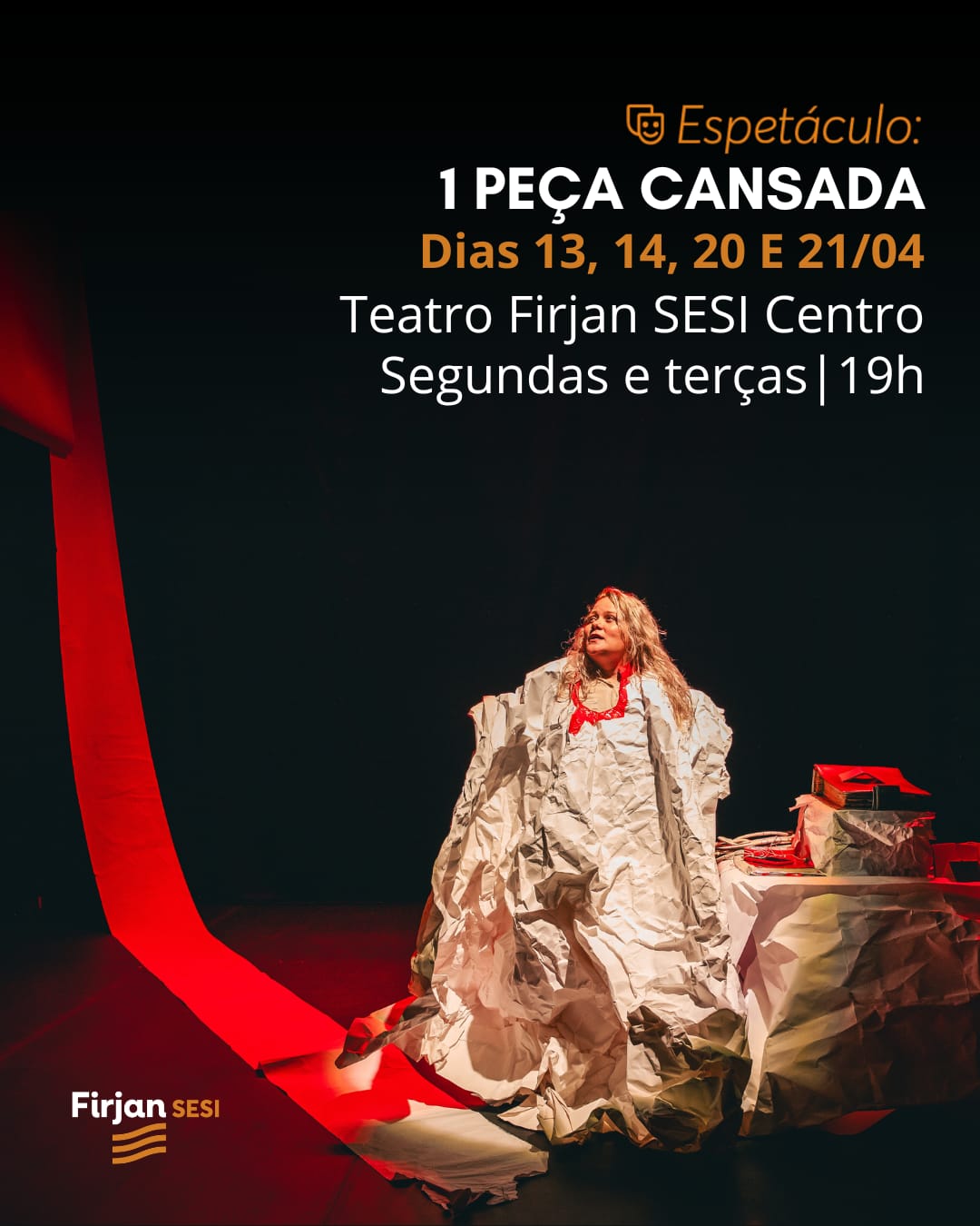 O elogiado espetáculo “1 peça cansada”, criação de Natasha Corbelino, está de volta ao Rio, em curta temporada no Teatro SESI CENTRO