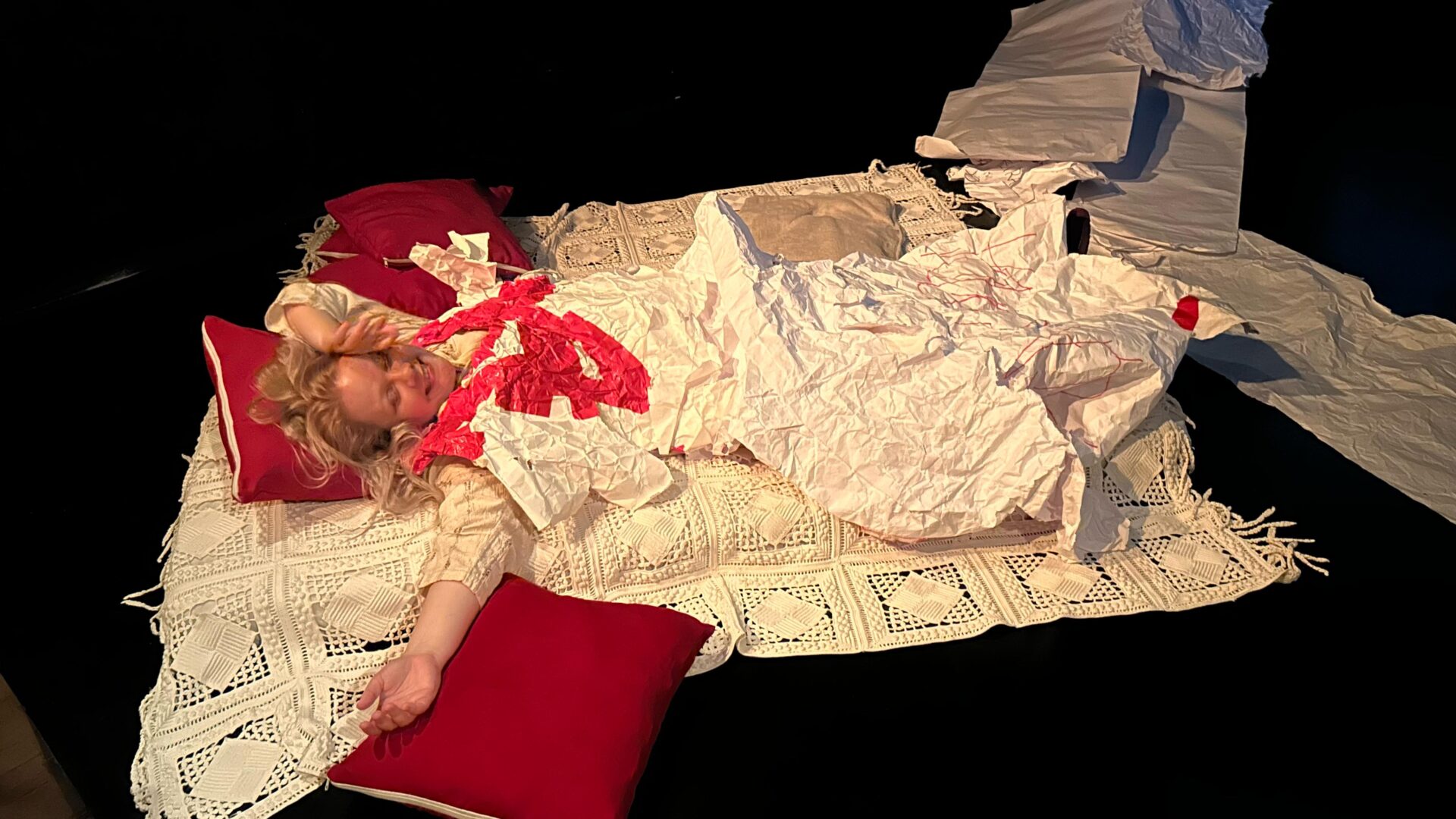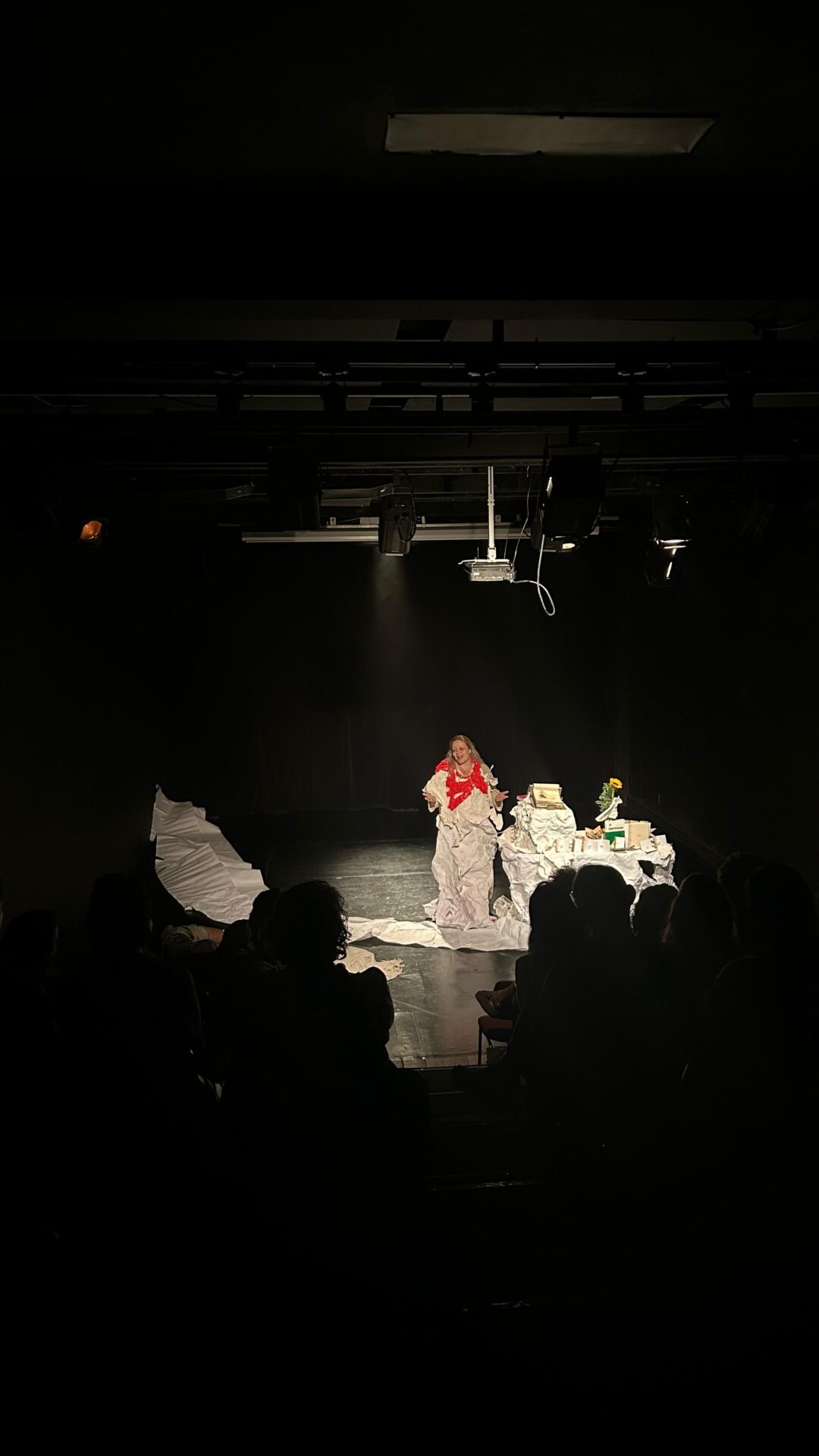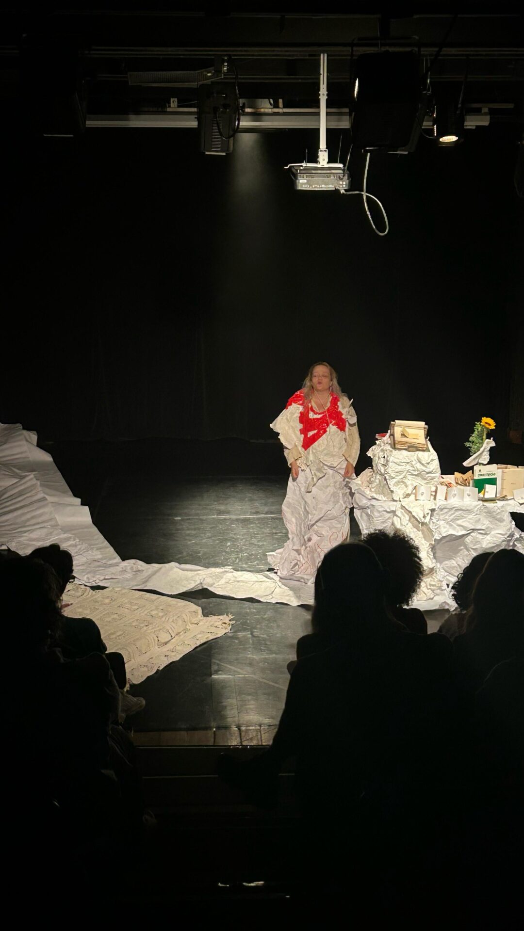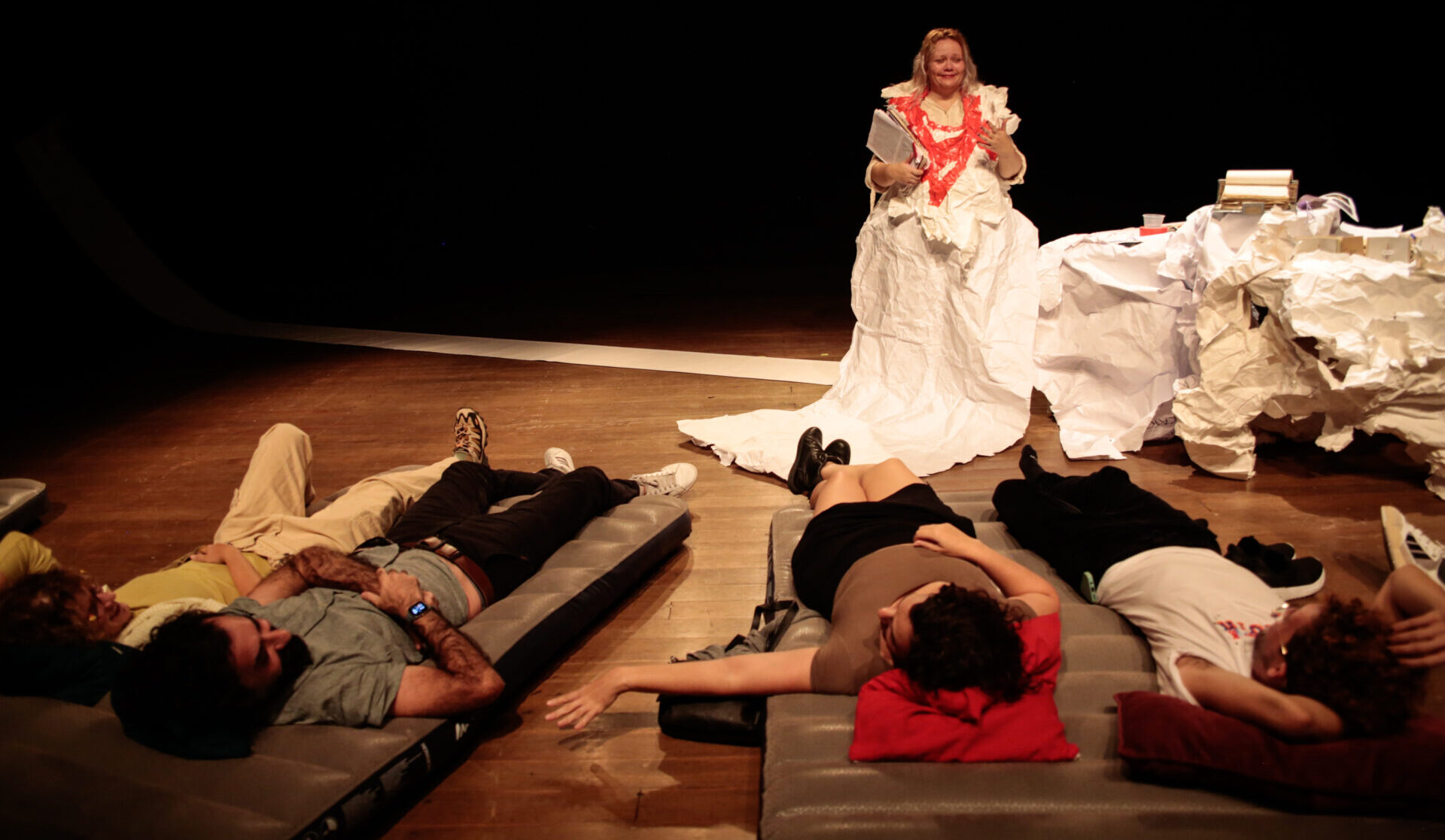 1 peça cansada, de Natasha Corbelino, é uma peça performativa que celebra o processo continuado da criação com a produção e o ato de causar saúde coletiva a partir da cena em honestidade radical. A peça se ergue com uma poética do limite, onde o tremor é tática para seguir. Em movimento, a artista partilha o percurso de um corpo cansado e desejante, que busca possibilidades de expansão em um encontro de delicadezas com o público. A peça é um mergulho na experiência de listar cansaços como uma forma de criar laço coletivo, memória, futuro, sonhos sonhando. Natasha instaura uma atmosfera afetuosa e cúmplice, onde a plateia é acolhida em seus cansaços.