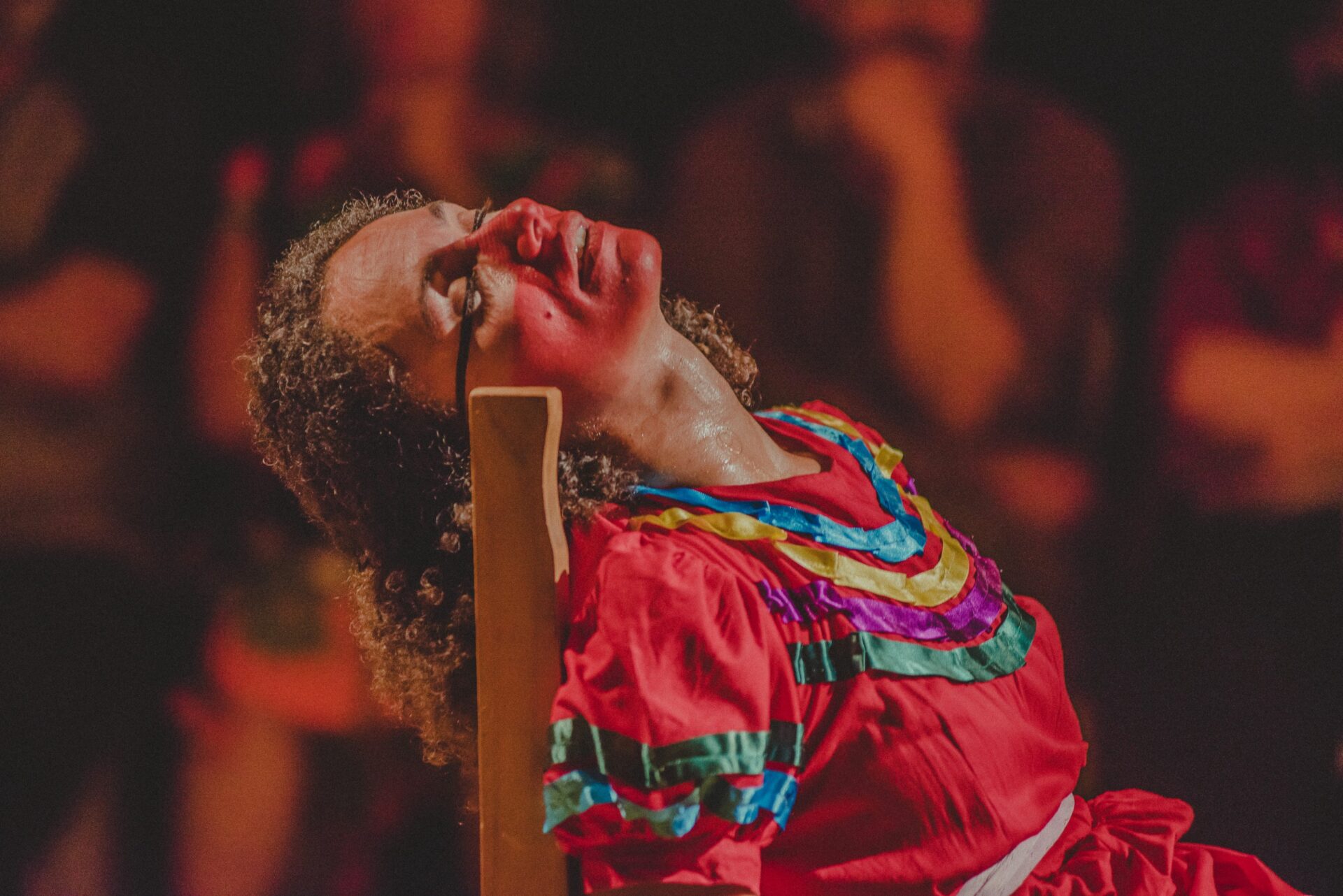 Sinopse: A performance traz ao centro da arena a vociferação contra a engrenagem de violências às quais mulheres são continuamente submetidas. Trazer mulheres na boca, evocá-las, dizer seus nomes, contar suas histórias é a motivação central dessa ação. As mulheres que cruzam o caminho da atriz estarão compondo o texto manifesto que abraça a performance de Tânia Farias que, como sempre, carrega consigo toda a Tribo de Atuadores Ói Nóis Aqui Traveiz. Vozes como a de Violeta Parra, Gioconda Belli e da própria atriz, que ousa contar detalhadamente sua história pessoal de violência sofrida e intercruzar com outra real, a de Magó, bailarina, e amiga, barbaramente violentada e assassinada em 2020, ao qual a atriz presta homenagem. Um ato político contra a violência de gênero, intermediado pelas provocações do sensível, capacidades próprias de uma mulher de teatro. Mais uma etapa de construção da reflexão dessa mulher de Teatro num momento tão trágico, de autorização de todo tipo de barbárie contra mulheres, negros, lgbtqia+ e tudo o que o conservadorismo dessa elite atrasada considera uma ameaça ao seu projeto de morte, de não corpo e de não felicidade. Duração: 45 minutos. Indicação: 16 anos