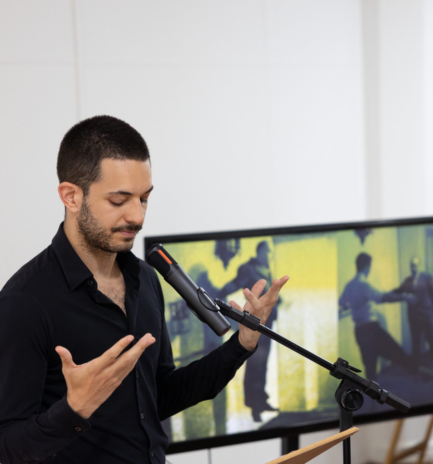 “A primeira dança” é uma palestra performance sobre as primeiras danças da humanidade, assim como suas versões sociais e pessoais. A fala, acompanhada por imagens e dança, convida o público a pensar sobre aquilo que chamamos de dança e sobre como ela pode existir para além de uma demonstração técnica, podendo também falar dos limites e aprendizados do corpo.