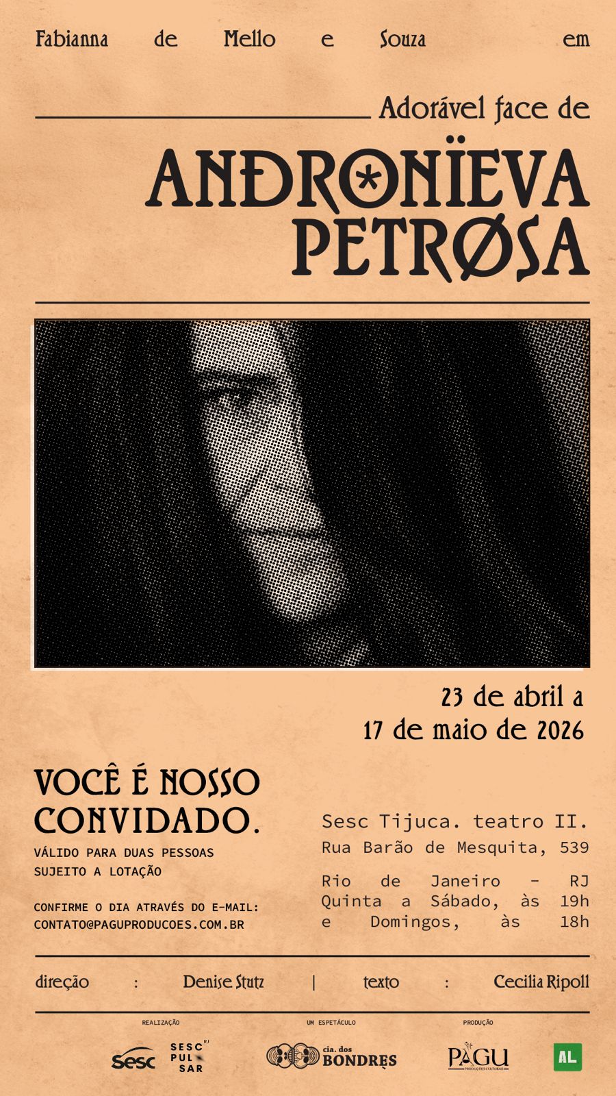 ‘Adorável Face de Andronieva Petrosa’ estreia no Sesc Tijuca e tensiona autoria em jogo cênico vertiginoso