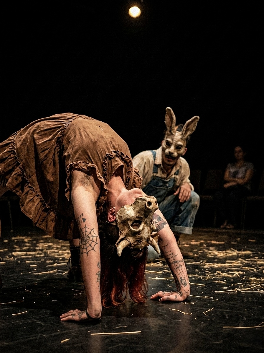 Ao investigar relações atravessadas pela perda, Algodão & Palha revela como o luto pode se tornar obsessão, e, pouco a pouco, evoluir para dinâmicas de controle, repetição e violência. Em uma casa onde o passado insiste em permanecer, o espetáculo expõe os mecanismos sutis que sustentam ciclos de violência contra a mulher, muitas vezes disfarçados de cuidado.