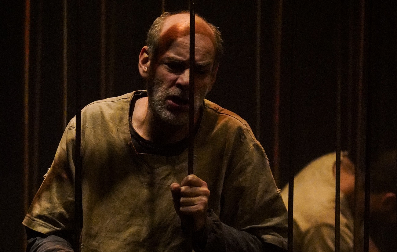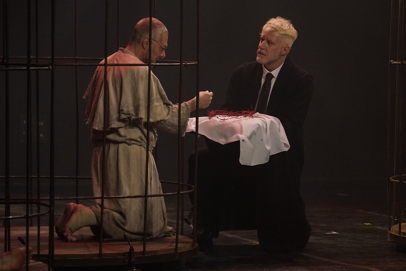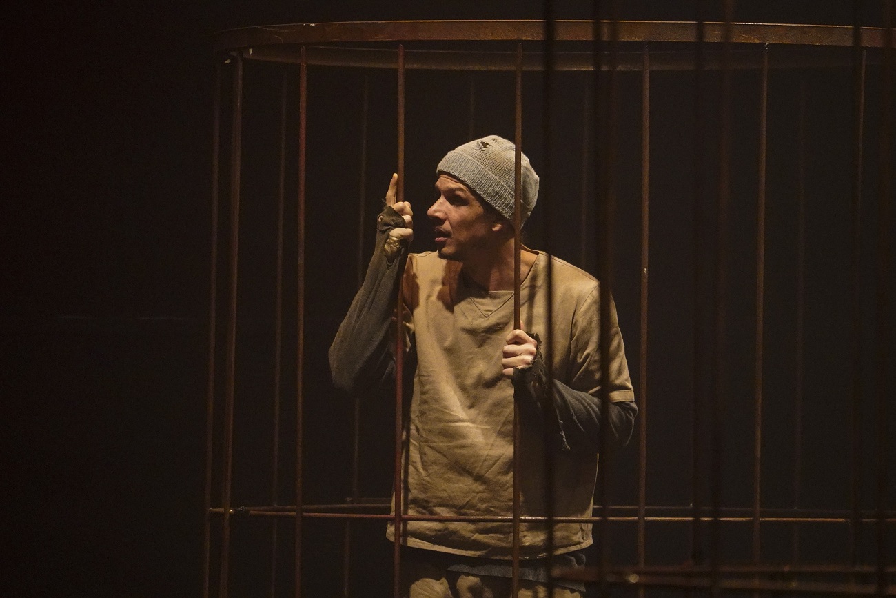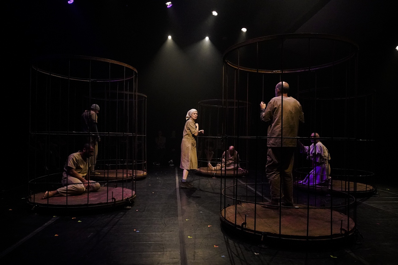 No porão da fome, a autora coloca em conflito os prisioneiros condenados a morrer na cela: o Padre, o Carcereiro, o Poeta, o Estudante e o Joalheiro, que são visitados pelo Oficial da SS, pela Mulher que limpa os fornos e por Hans, o ajudante da SS. Na montagem, eles aparecem isolados, confinados em gaiolas como um signo, uma alusão à prisão onde a história se passa. “A primeira coisa que os governos totalitários e ditatoriais fazem ao prender alguém é destituí-lo de sua dignidade e submetê-lo ao sofrimento extremado, e isso os nazistas fizeram com requintes inimagináveis de crueldade”, comenta o diretor. Segundo ele, a proposta de concepção de Hilda Hilst é muito clara, colocando as personagens em estado de reflexão sobre suas próprias condições no confinamento. A leitura que a autora faz dos aspectos éticos e humanos passa por questionamentos sobre Deus, sobre o mal e sobre a crueldade