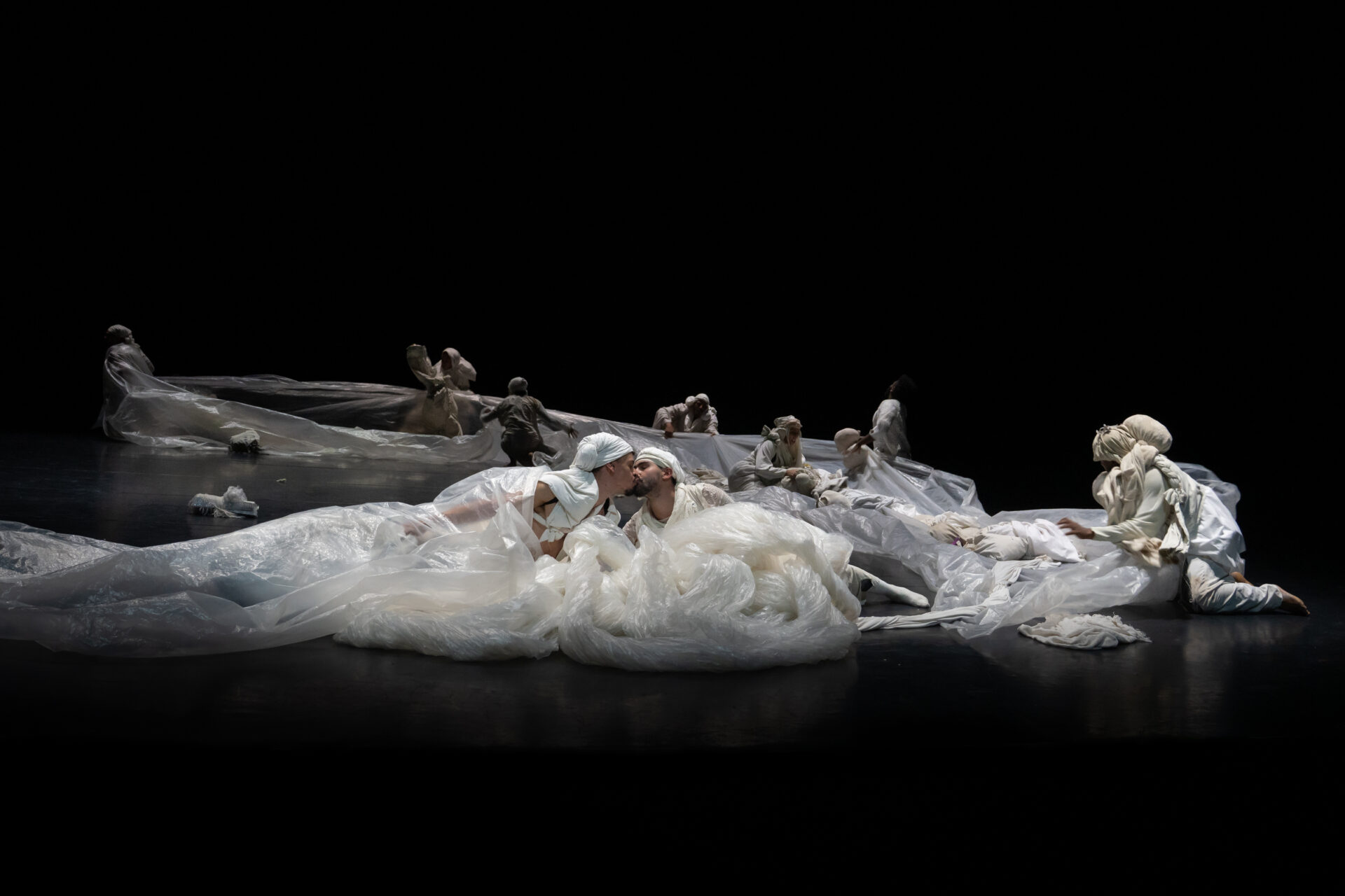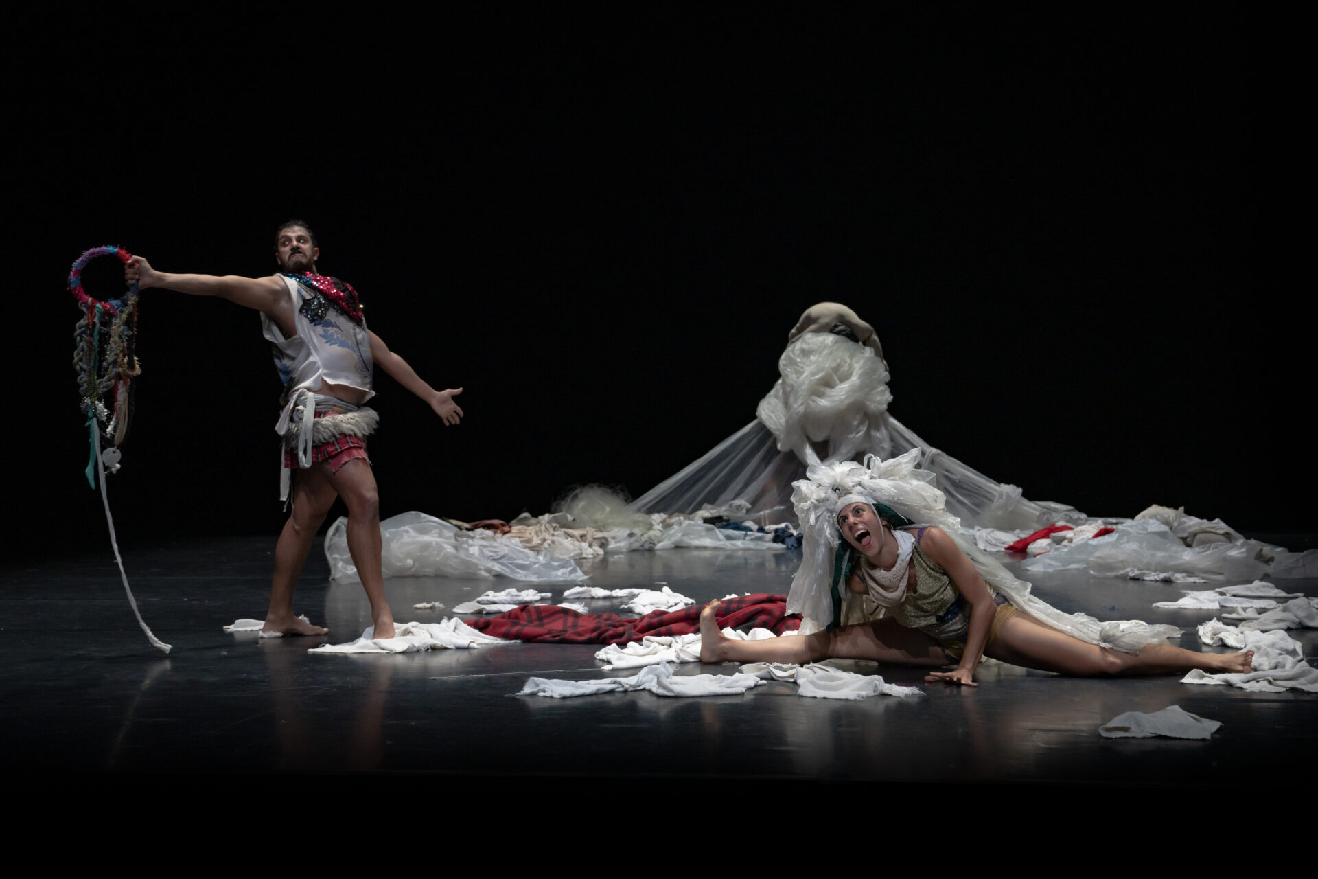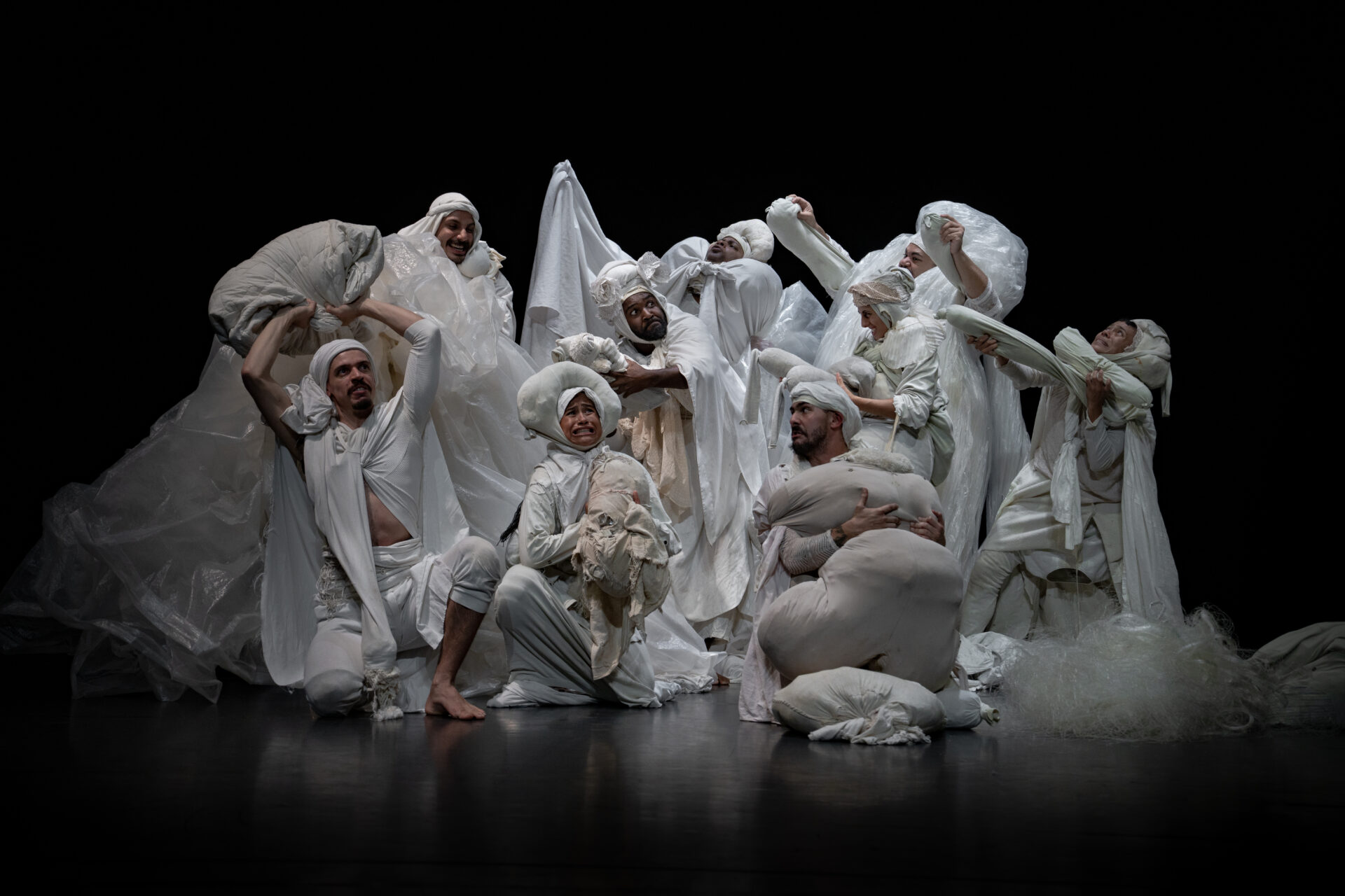 Nesse jogo entre fronteira e bordado, simbolizando separação e conexão, Lia Rodrigues explora um espaço de mudanças: corpos e materiais se encontram, se transformam e se reinventam. Com nove bailarinos e bailarinas em cena, a coreografia estuda os possíveis espaços intermediários, com uma pergunta: há um caminho para redesenhar o nosso mundo?