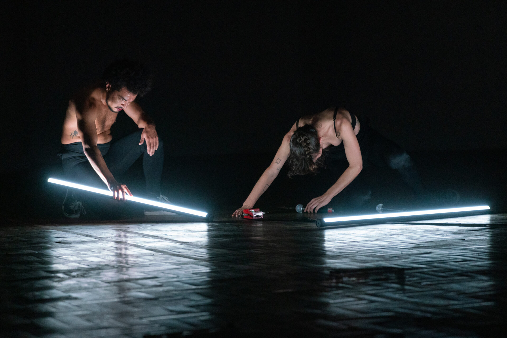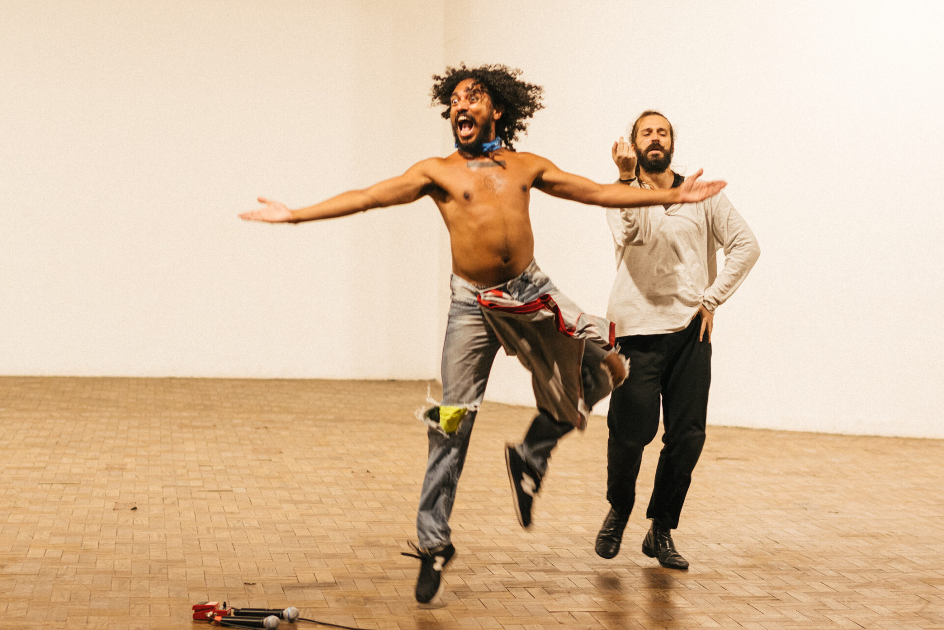 Como as redes sociais e a internet ecoam em você? E nos seus gestos? Nesse dueto dirigido por Cristian Duarte, os dançarinos Gabriel Tolgyesi e Maurício Alves buscam modos de estabelecer conexões entre si, com a plateia e com o mundo, reverberando corpo-verborragicamente em palavras-danças aquilo que circula em seus feeds, desde memes até trágicas notícias.