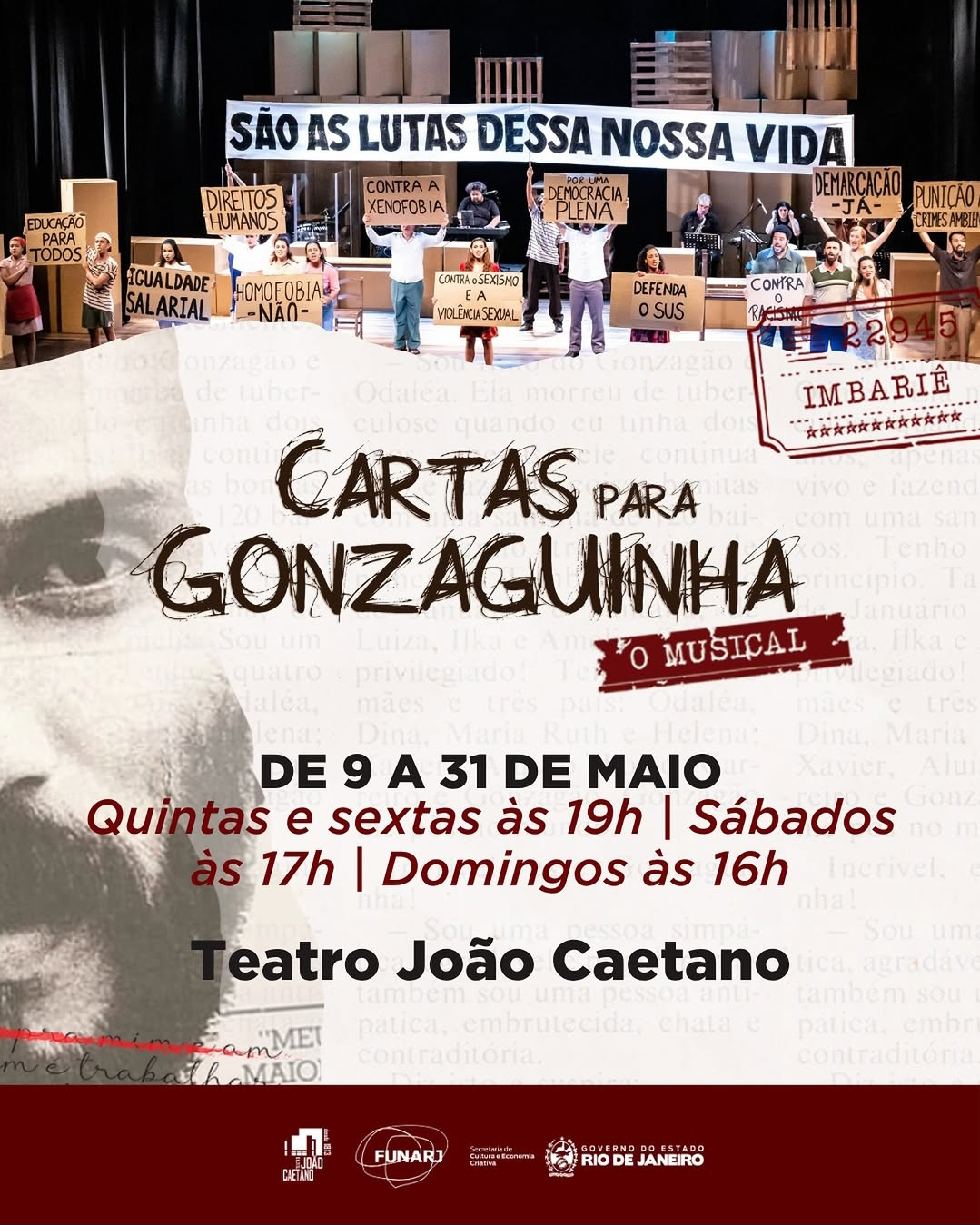 “Cartas para Gonzaguinha, O Musical” retorna aos palcos no Teatro João Caetan