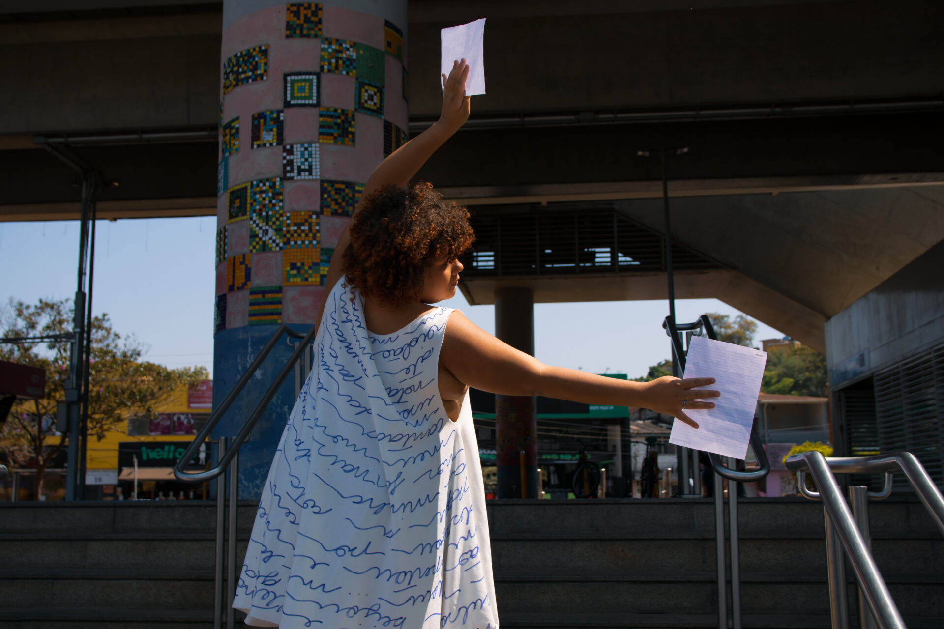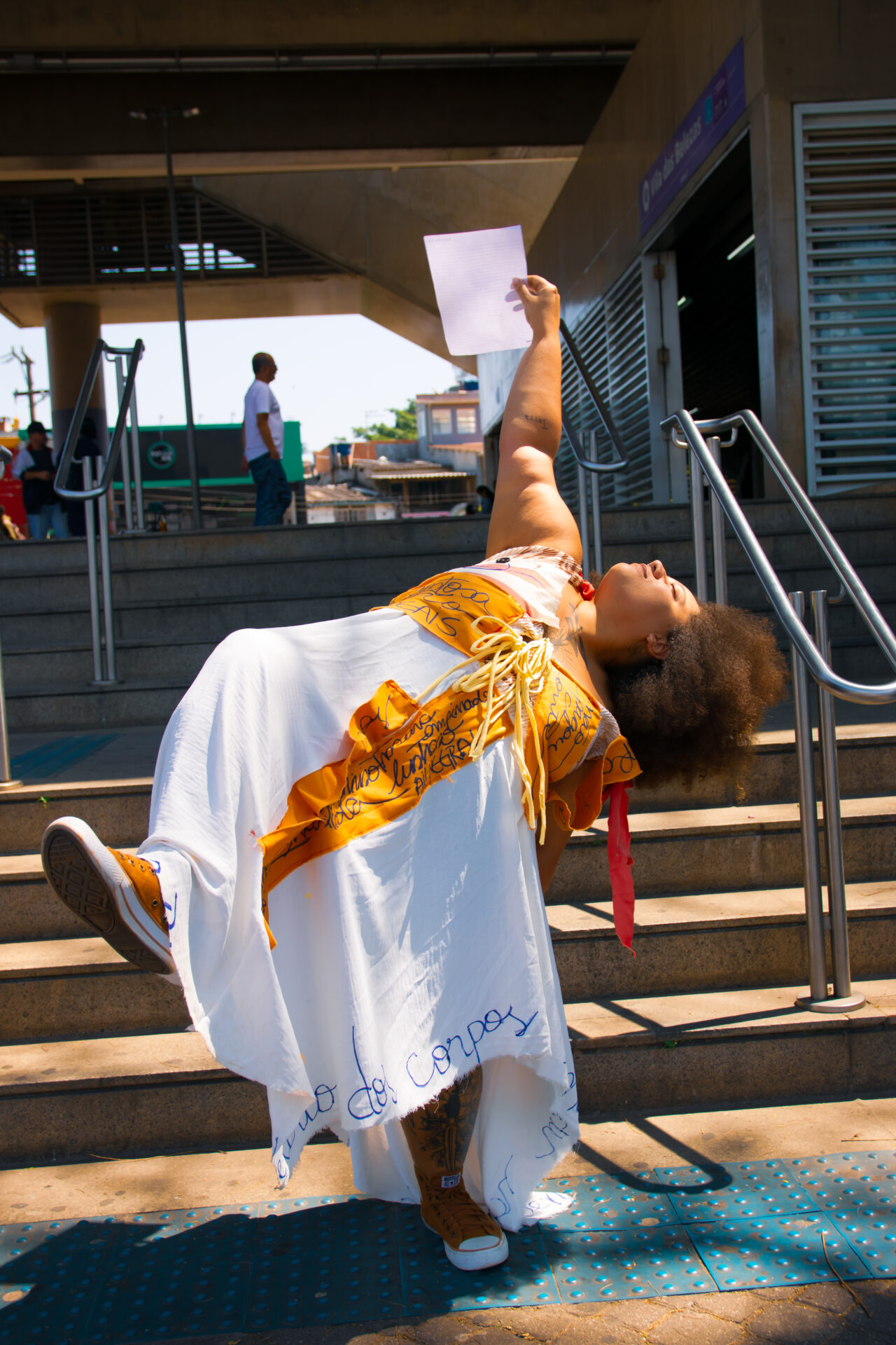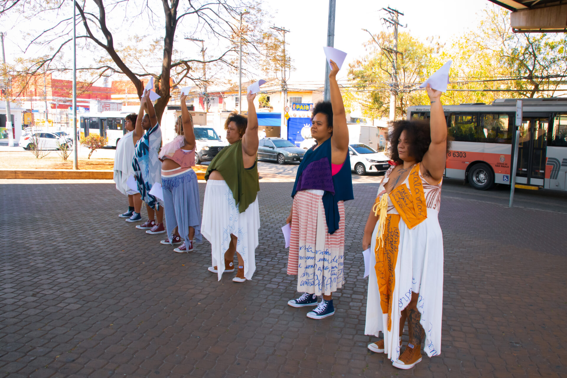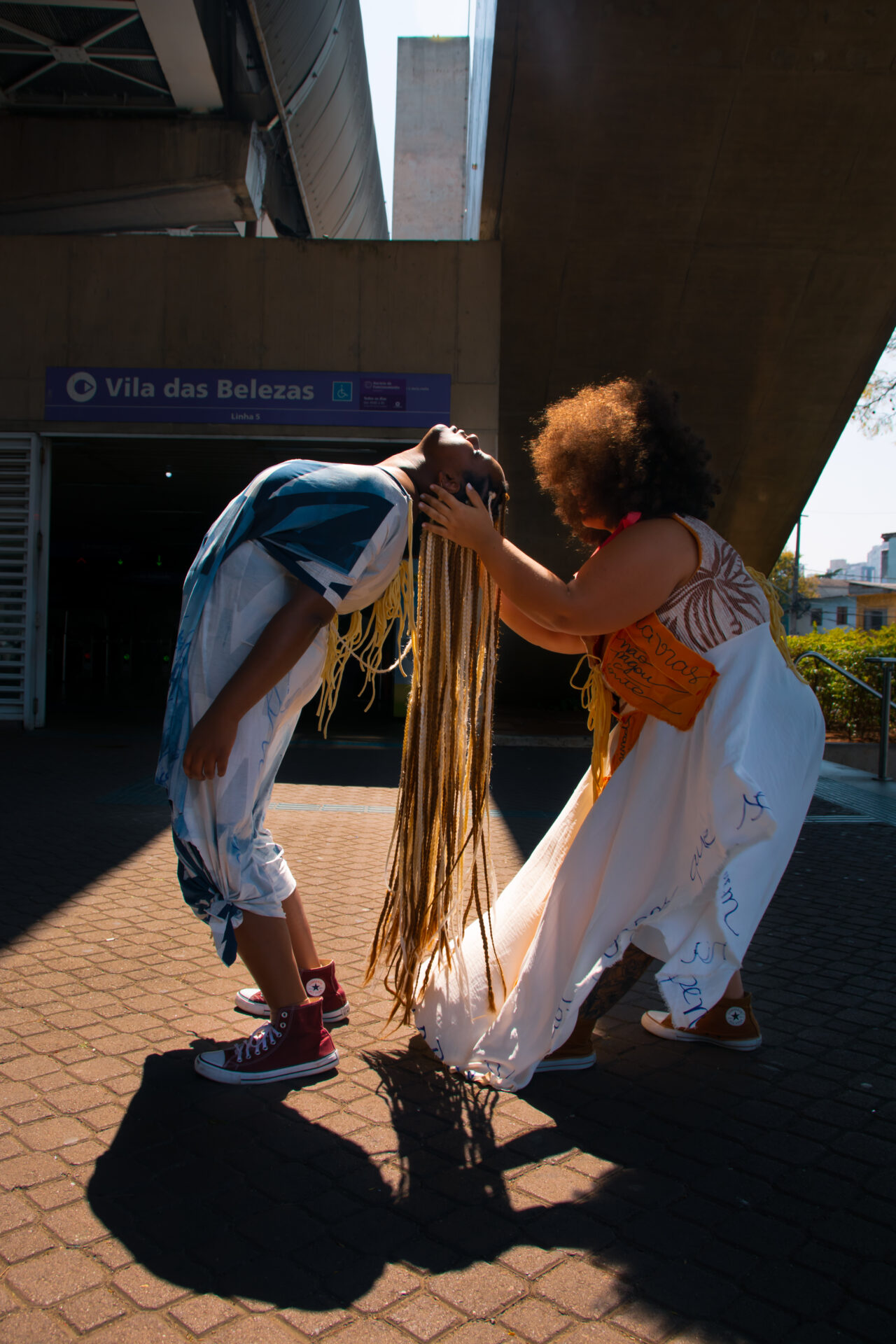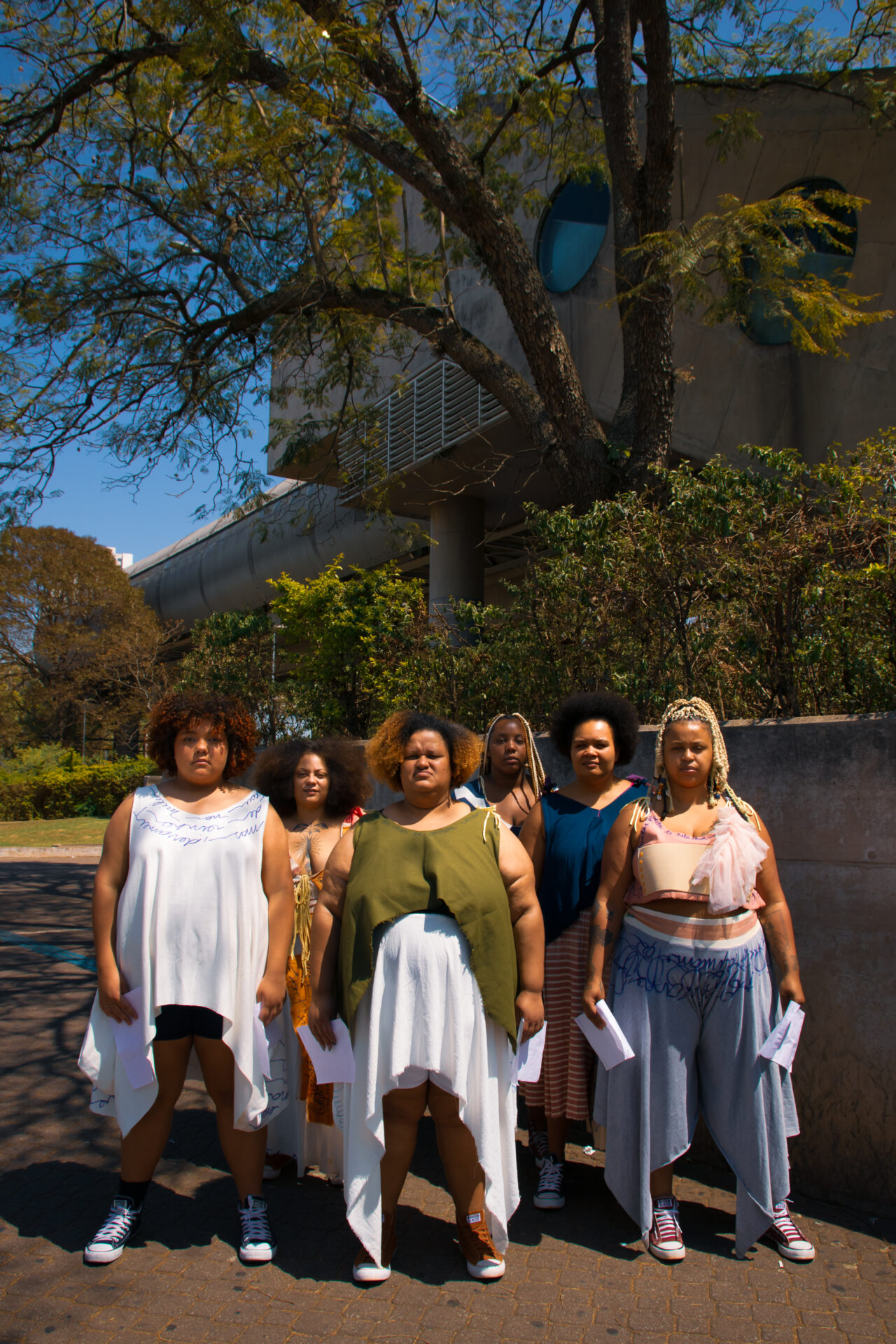 Entre trios, duos e solos, corpos dançam como manifestos vivos, desafiando padrões estéticos ao resgatar a beleza como experiência plural e libertadora. Inspirada no poema “Eu-Mulher”, de Conceição Evaristo, a performance transforma o espaço urbano em território de cura, escuta e reexistência.