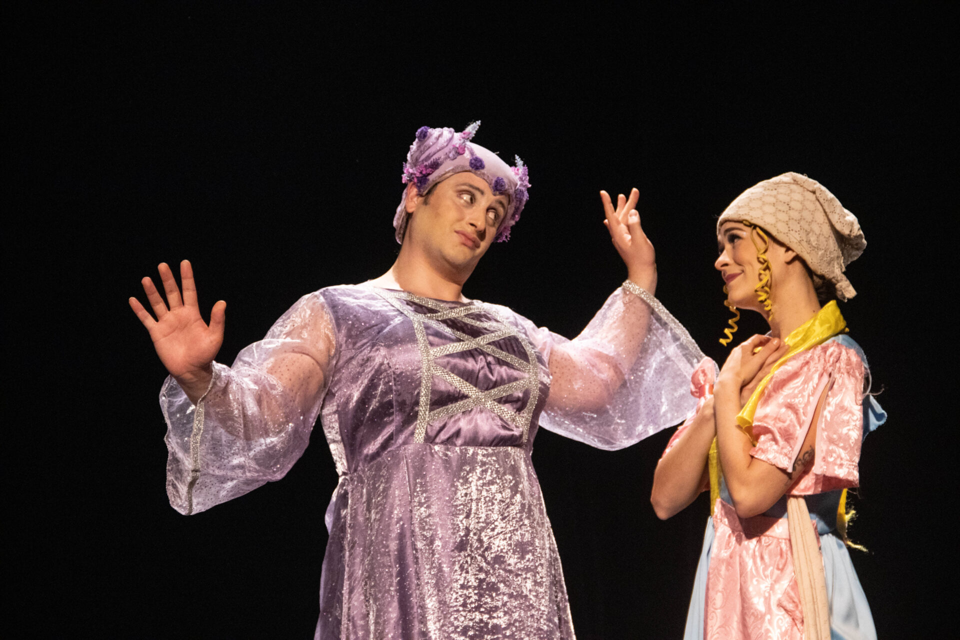 as injustiças impostas pela família enquanto guarda, com delicadeza e força, o desejo de uma vida melhor. Com a intervenção mágica da Fada Madrinha, ela chega ao Baile Real, vive um encontro encantador com o Príncipe e deixa para trás o famoso sapatinho de cristal que mudará seu destino. Com trocas de personagens em segundos, interpretações hilárias, surpresas visuais e muita imaginação, o espetáculo