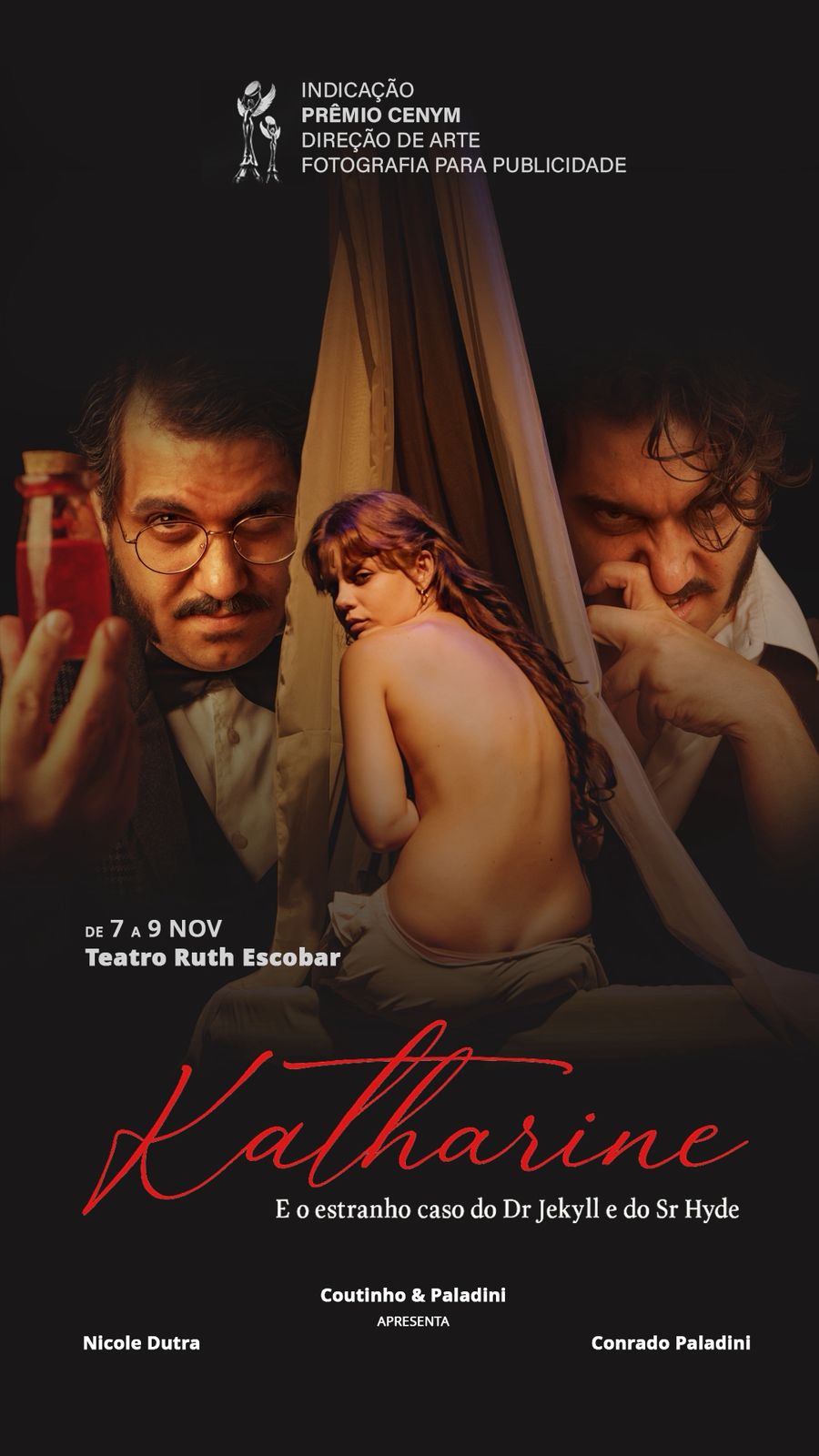 A protagonista Nicole Dutra entrega uma Katharine intensa e vulnerável, enquanto Paladini alterna-se ao vivo entre Dr. Jekyll e Sr. Hyde, numa metamorfose cênica que sintetiza o embate entre ética e desejo.