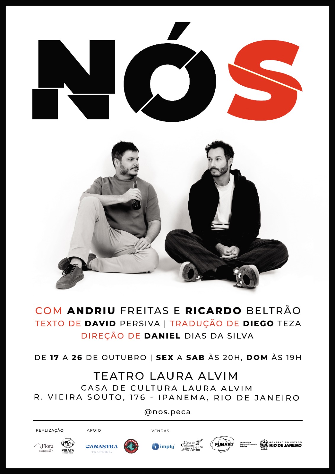 Onde começa o amor? E onde ele termina? Inédita no Brasil, “NÓS”, peça do premiado dramaturgo britânico David Persiva chega a sua segunda temporada a partir de 17 de outubro no Teatro Laura Alvim, em Ipanema. A peça tem apoio institucional da Secretaria de Cultura de Economia Criativa – Funarj. O texto é uma comédia dramática que explora a primeira e a última meia hora de um mesmo relacionamento. Com direção de Daniel Dias da Silva, o espetáculo faz o público mergulhar nesses dois momentos marcantes na vida de um casal que está junto há três anos, vivido pelos atores Andriu Freitas e Ricardo Beltrão, permitindo refletir sobre o amor e as pequenas coisas que nos fazem encantar e desiludir nos relacionamentos contemporâneos.