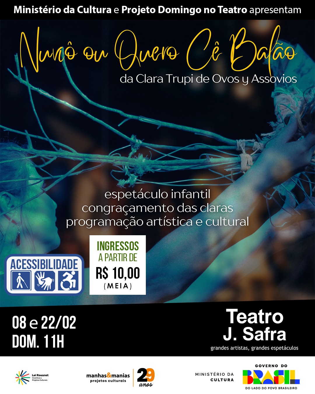 Apresentações dias 8 e 22 de fevereiro as 11h.
