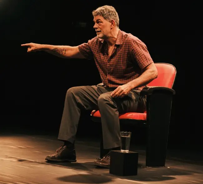 O que leva um homem pacífico, que sente repulsa por qualquer tipo de violência, que aprendeu a viver evitando conflitos – para não ser alvo da agressividade de outras pessoas – o que leva esse homem a cometer um ato extremamente violento? É a partir dessa pergunta que nasce a escrita de O Motociclista no Globo da Morte. O texto apresenta a história de Antonio, um matemático, um homem racional e sensato que, numa tarde de um dia qualquer, se vê̂ envolvido numa espiral de violência quando almoçava em um bar. É a partir deste fato, que muda a sua vida para sempre, e enquanto conta ao público com riqueza de detalhes o que aconteceu, que Eduardo vai tecendo considerações sobre as diversas formas de violência que resultam da vida em sociedade. E se é possível, aos seres humanos como indivíduos, combater essa violência ou se é inevitável render-se a ela.