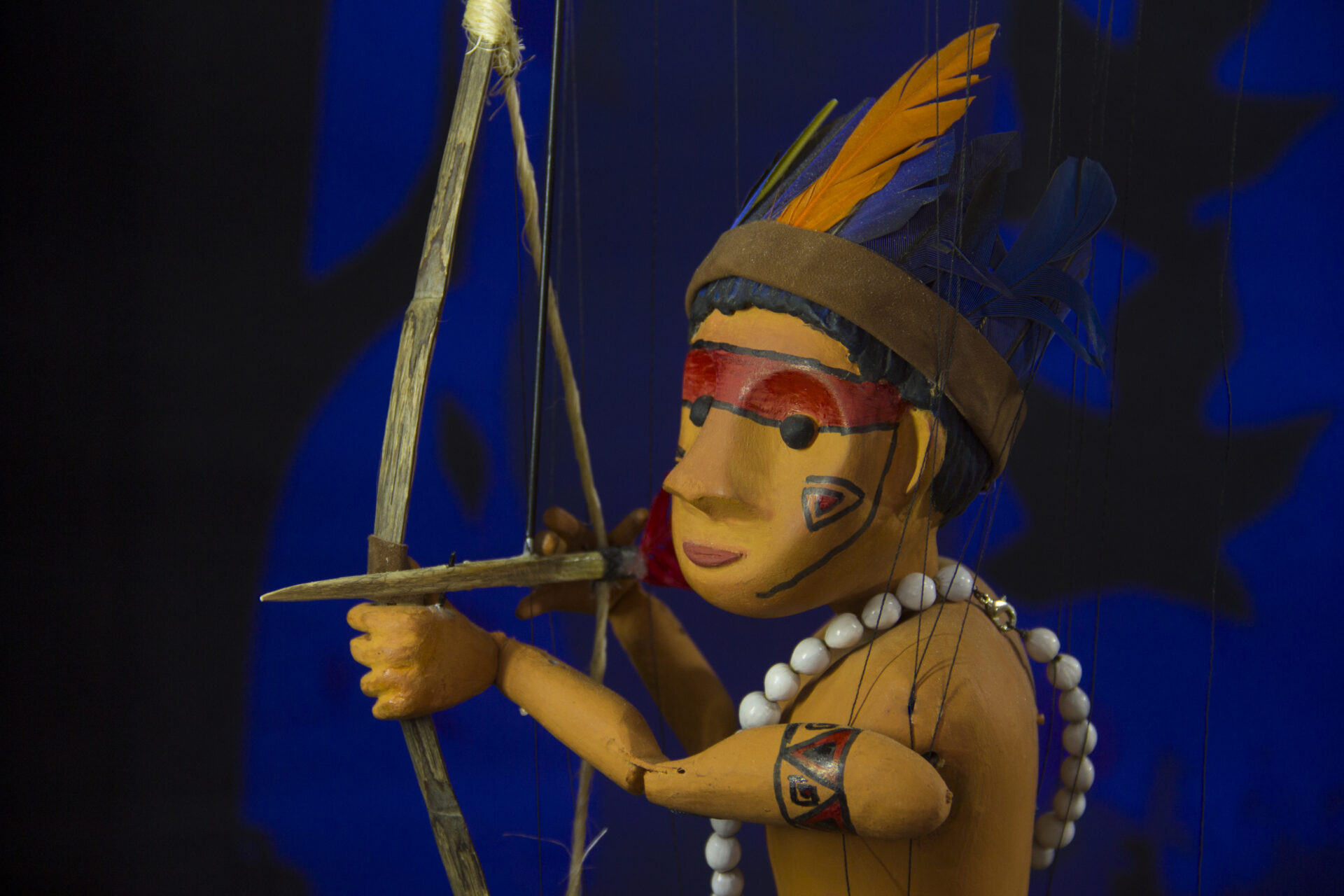 Arte plumária, pintura corporal, indumentária das marionetes e orientação sobre cultura indígena: Dhevan Kawin.