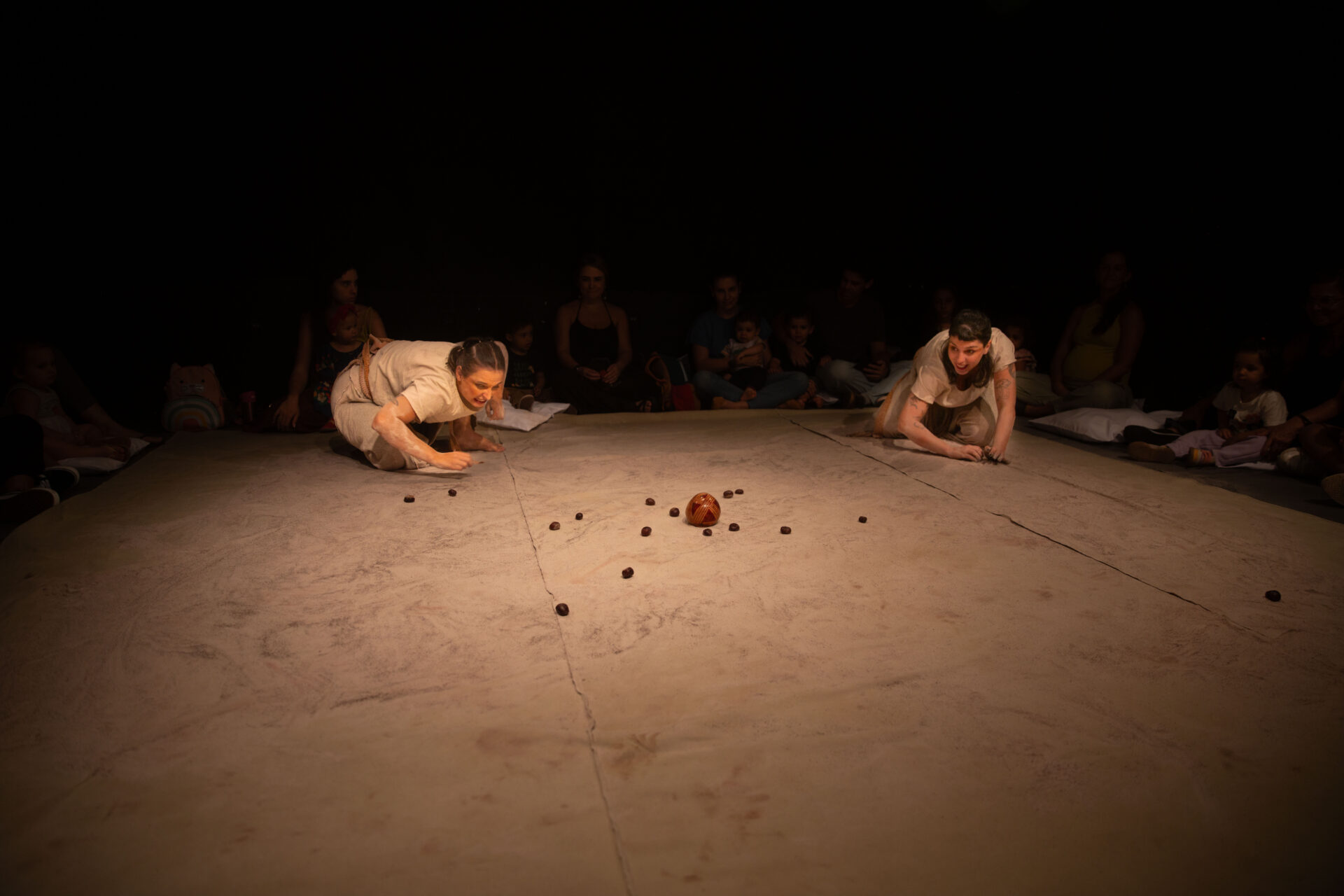 RUPESTRE – o que a terra conta, da 2 Mililitros Cia. Teatral, convida bebês a escutar as histórias guardadas no chão do Brasil