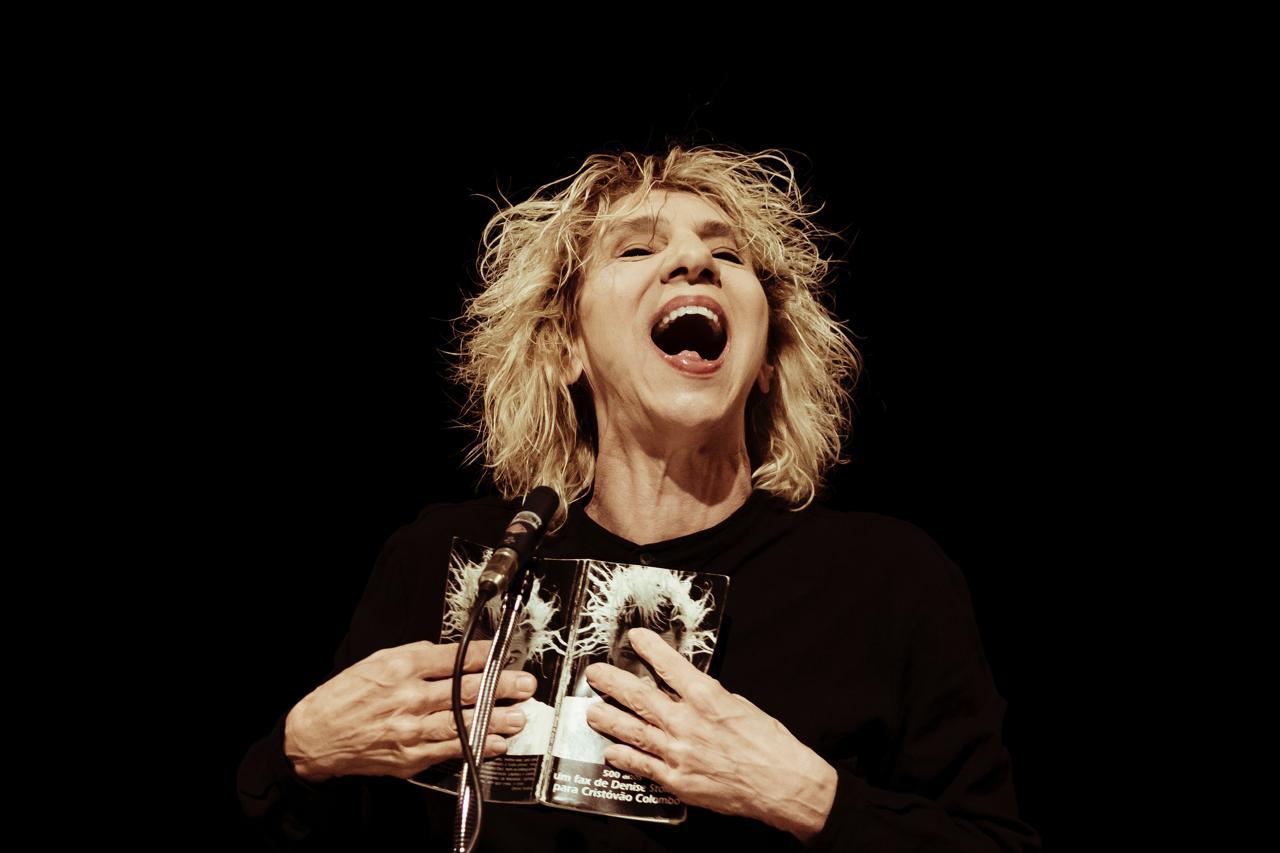 Espetáculo consagrado do repertório de Denise Stoklos, “Um Fax para Colombo”, retorna aos palcos em temporada popular.