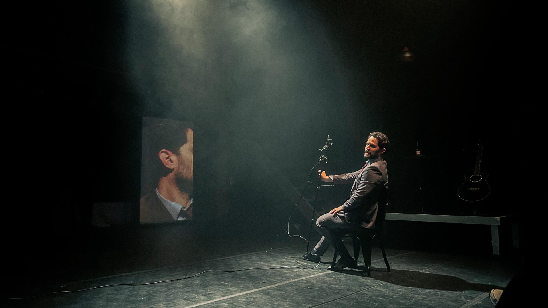 Com dramaturgia centrada no tema do luto e suas múltiplas formas de vivência, o espetáculo reúne dois relatos íntimos e complementares. Em Um Precipício no Mar, acompanhamos Alex, um fotógrafo que enfrenta o vazio após a morte trágica da filha de oito anos. No palco quase vazio, sua memória e vulnerabilidade se transformam em imagens e palavras que confrontam o público com as fragilidades da vida, da fé e da ciência.